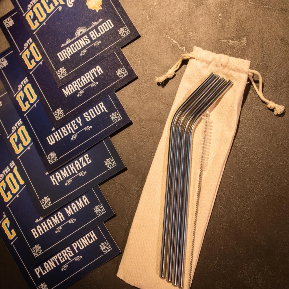 - Grenadine Sirup, Rezeptkarten, Strohhalm