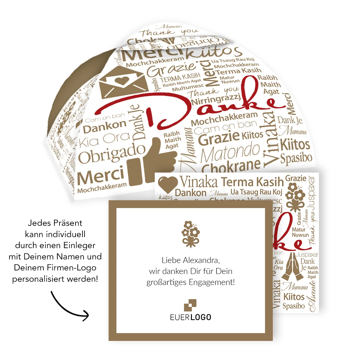 - Auffallende Design-Verpackung: „Danke – International“