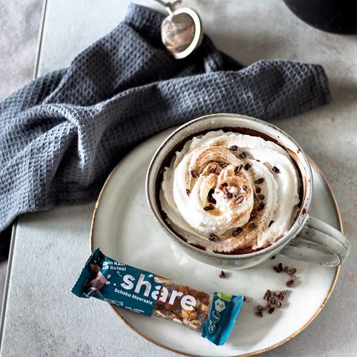 | Material: | 2x Share Bio Nussriegel – Schoko + Meersalz (à 35g), verpackt in einer hochwertigen Geschenverpackung, 1x Design-Banderole |