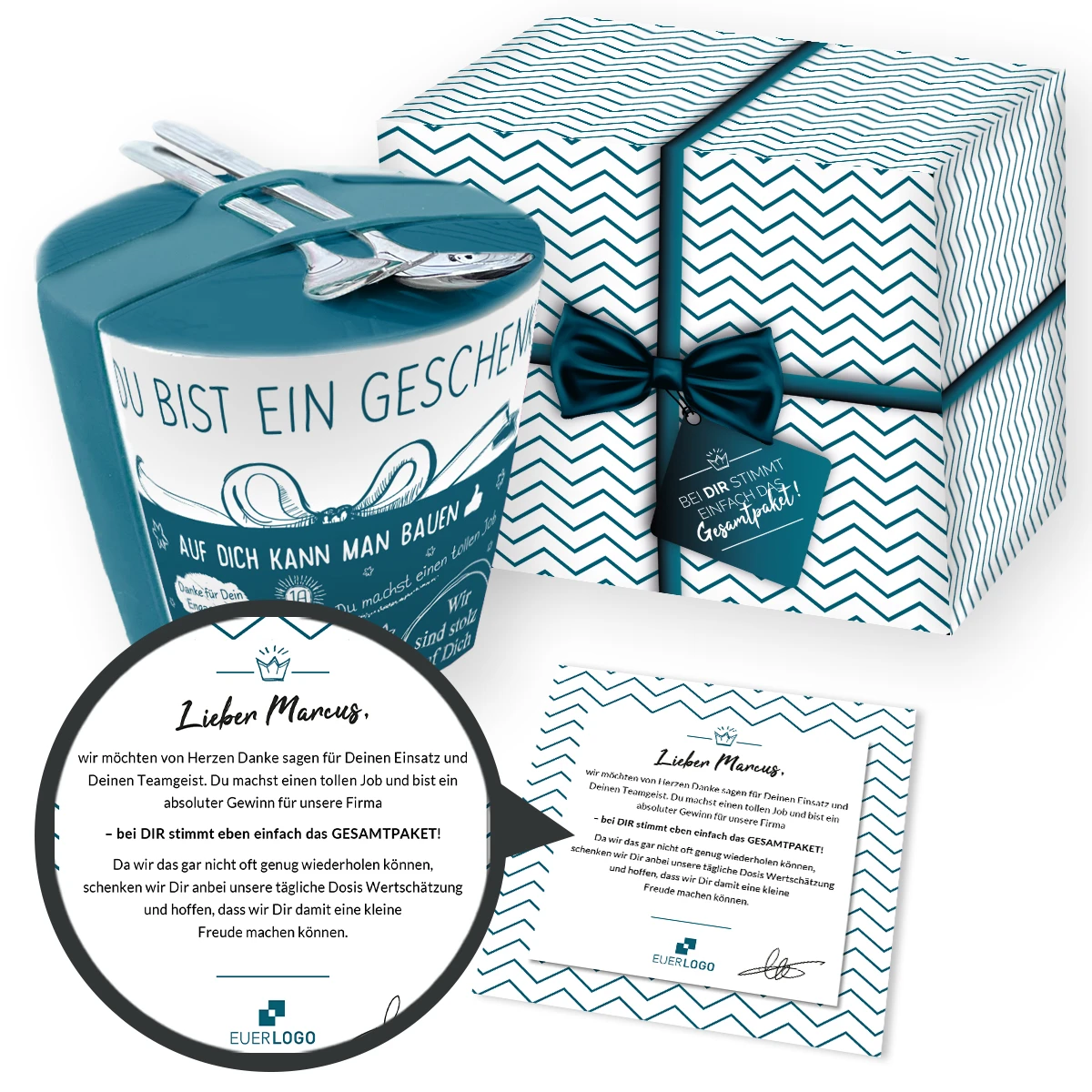 Stell Dir vor, wie einfach es ist, Deinen Mitarbeitern jeden Tag mit einer liebevollen Botschaft auf ihrer Lunchbox eine positive Pause zu schenken. Mit wunderschönen Botschaften verziert, bietet unsere Lunch2go-Schüssel nicht nur praktische Funktionalität, sondern auch emotionale Wertschätzung. Unsere Lunch2go-Schüssel ist nicht nur schön, sondern auch funktional – auslaufsicher, spülmaschinenfest und mikrowellengeeignet für ultimative Bequemlichkeit.