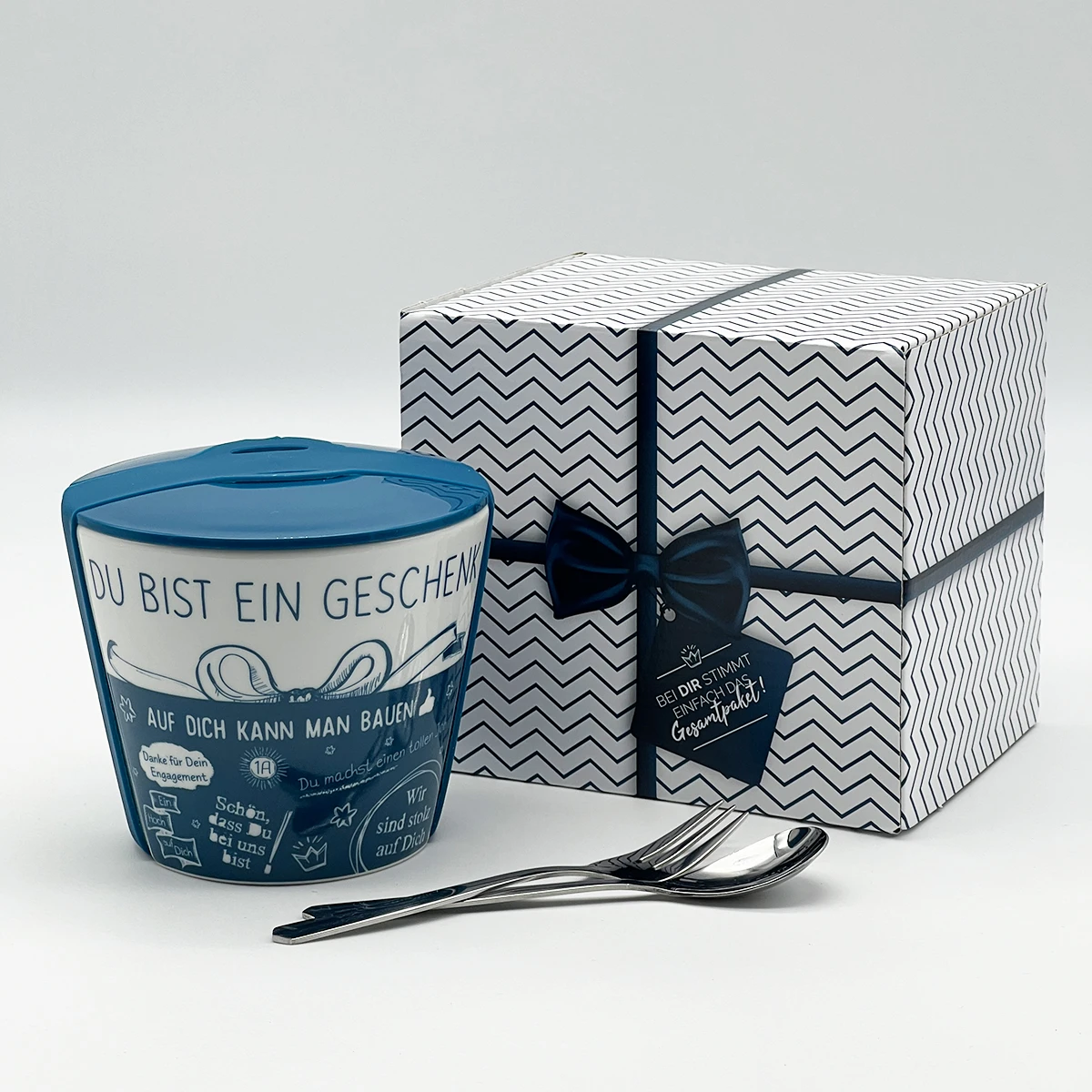 | Material: | Hochwertige Lunch2go-Schüssel aus Porzellan mit Besteck in einer wunderschönen Design-Präsentverpackung |
