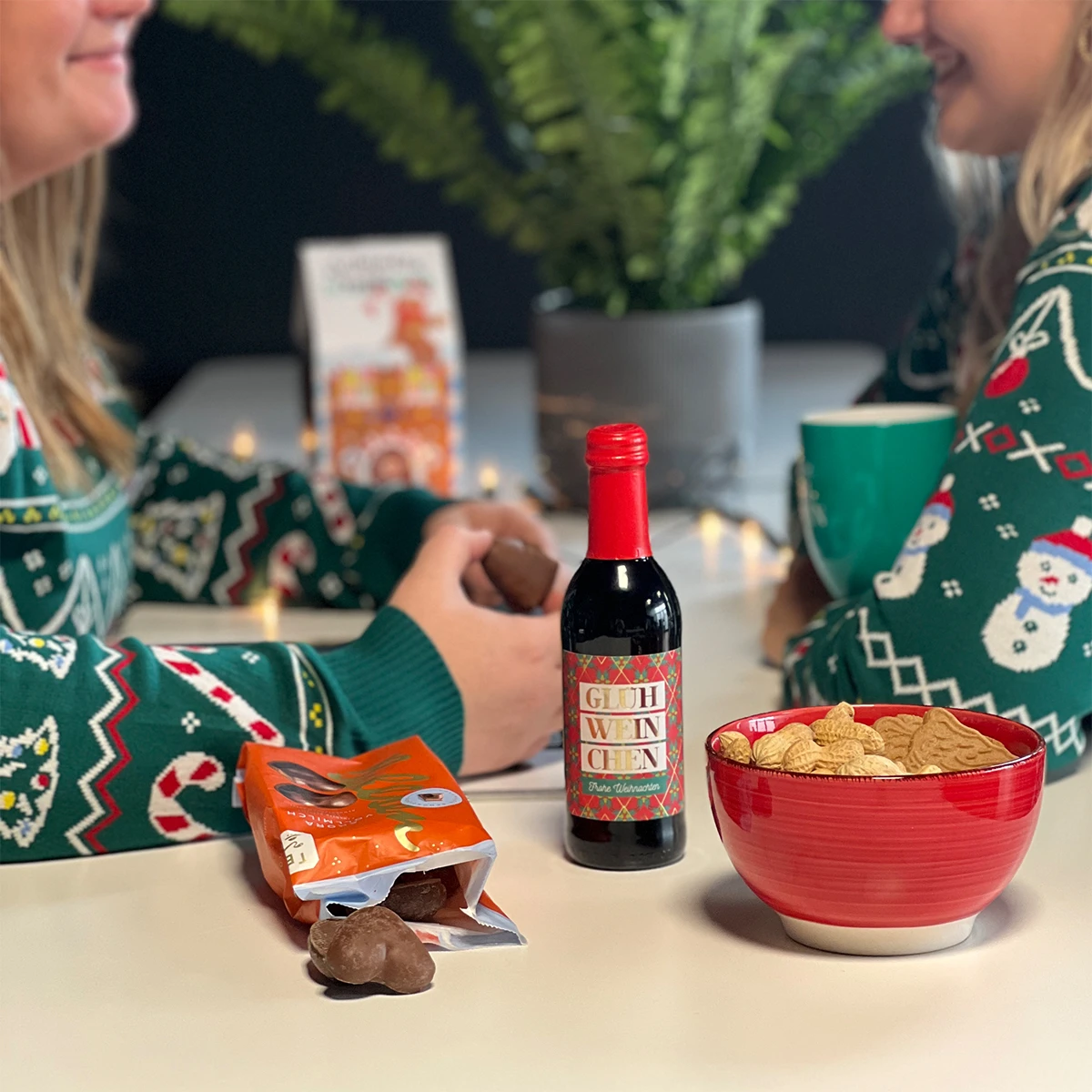 Weihnachtspulli mit leckerem Glühweinchen und köstlichen Lebkuchenherzen – verpackt im naturfarbenen Jutesäckchen. Das ist Work-Life Balance vom Feinsten und Mitarbeiterbindung, die auch zuhause wirkt.