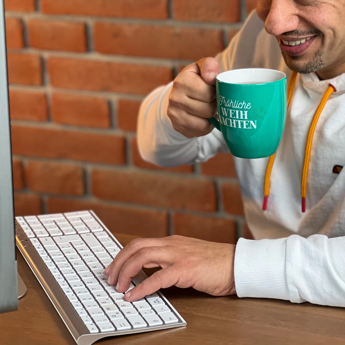 Mit dieser wunderschönen Weihnachtstasse liegst Du absolut richtig, wenn Du Deinen Mitarbeitern und Kunden eine Freude zu Weihnachten machen möchtest. Verpackt in einem passenden Geschenkkarton ist die Weihnachtstasse das perfekte Geschenk.