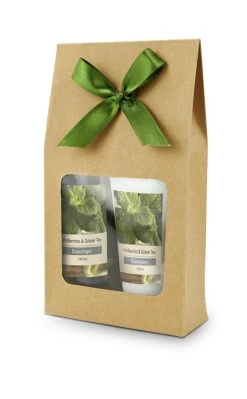 Behalten Sie die Balance! Das Wellness-Set „White in Balance“ besteht aus einem Holzkörbchen mit 50 ml Duschgel, 1 Badekugel und einem Schwamm. Duftrichtung der Badezusätze ist Weißer Tee. Die ideale kleine Aufmerksamkeit für Mann und Frau!